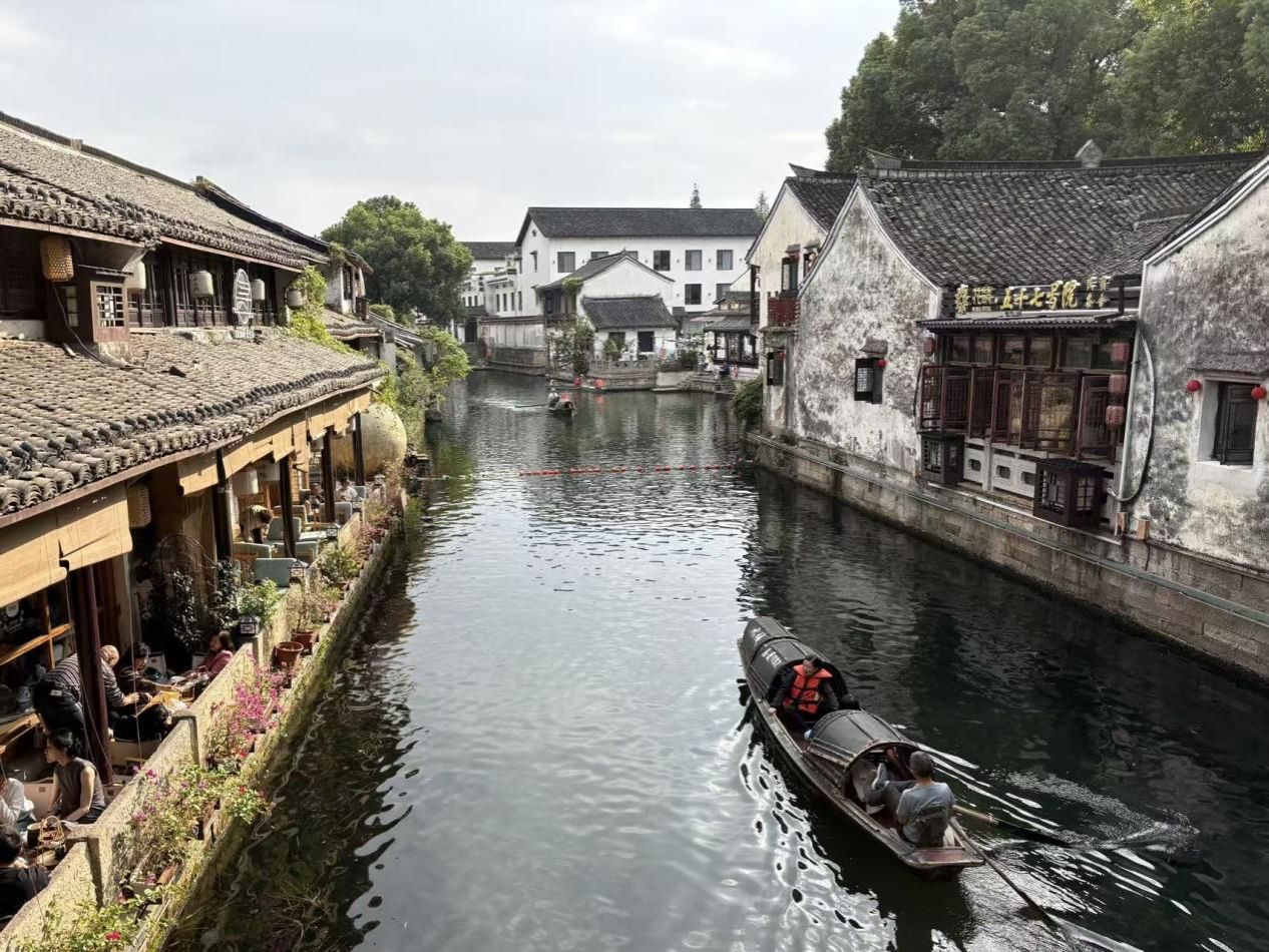 走出场馆,仓桥直街的秋日烟火气令老师们沉醉。青石板路两侧,红灯笼与五星红旗相映成趣,仓桥、宝珠桥等古石桥横跨河道,桥下乌篷船摇曳,波光粼粼。老师们或登上石桥观景,或在市集驻足,感受着古街秋日韵味与市井风情的完美融合,体会着古城的鲜活生命力。