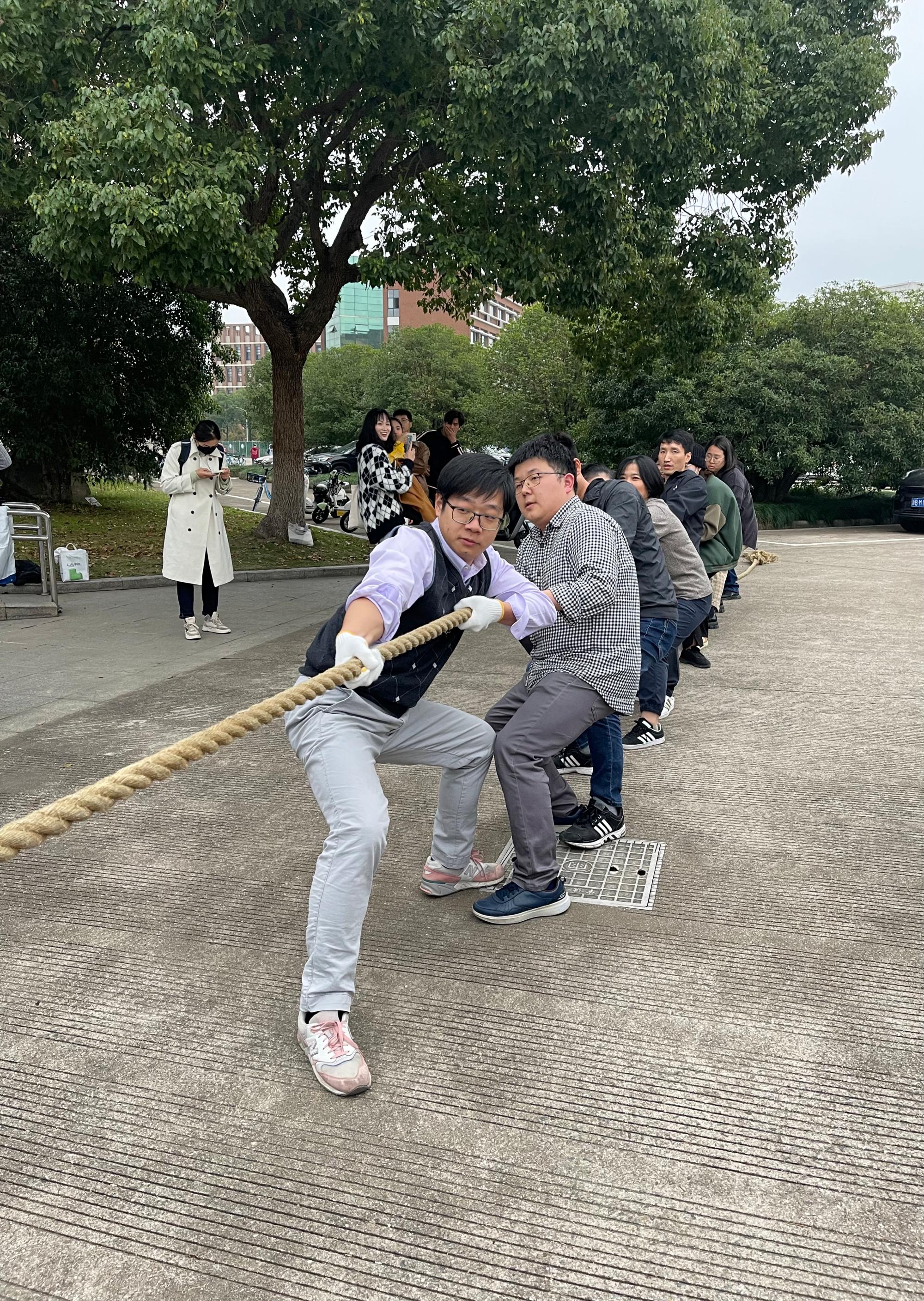 学院组织的拔河比赛,我系教师积极参与,兴致十足。原定12人的参赛队伍,竟有十五六人踊跃登场,此外,还有很多的本科生、研究生同学过来观战助威。比赛场上,大家奋力拼搏、豪气干云、呐喊欢呼、声遏行云。虽然最终止步四强,但成绩是次要的,大家通过比赛愉悦了身心,展现了团结一致、昂扬向上的精神面貌,收获满满!