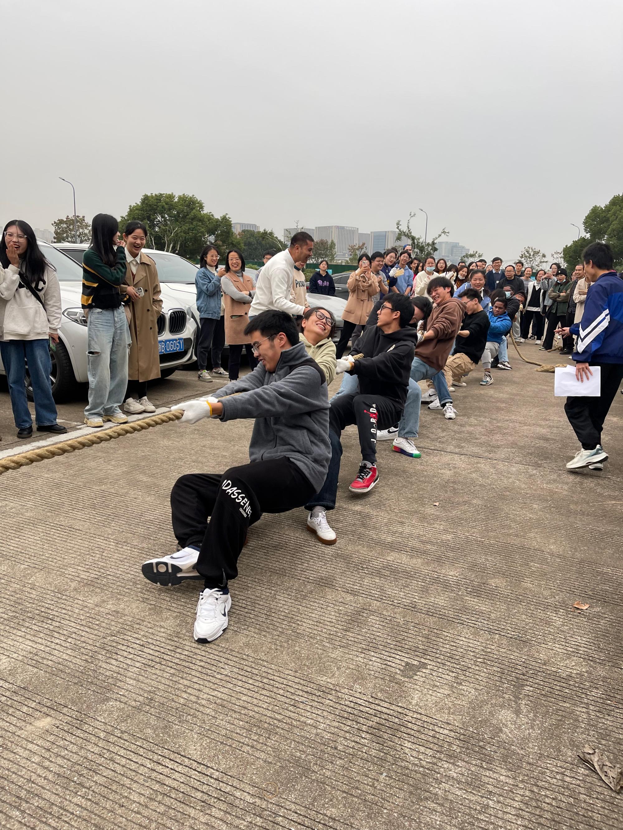 师生拔河赛是一个很棒的比赛。昨天最让我感动的是比赛的气氛,师生之间虽然也是“竞争”对手,但是互相鼓励的感觉特别棒。现场欢声笑语,紧张又开心。总之这个比赛中呈现出的团结奋斗的氛围实在是太美妙了。