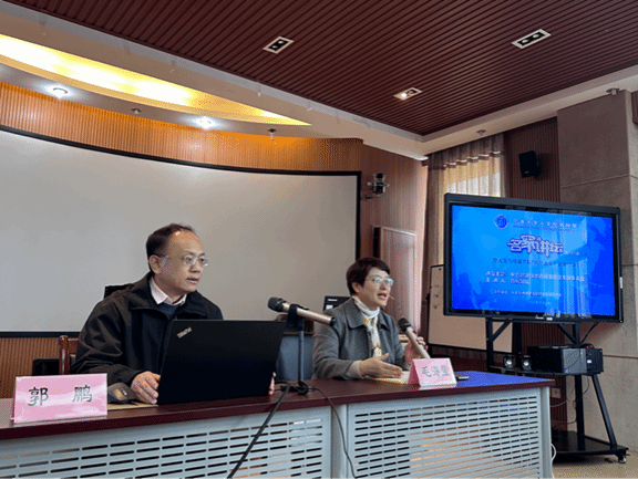 12月1日下午两点,北京语言大学教授,博士生导师,北京语言大学校长助理、研究生院院长、汉学与中国学学院院长郭鹏先生应邀作了题为“中国概况教学的叙事层次与叙事类型”的讲座,讲座以线上线下的形式在学院104报告厅举行,国际中文教育硕士点负责人、系主任毛海莹教授主持讲座。