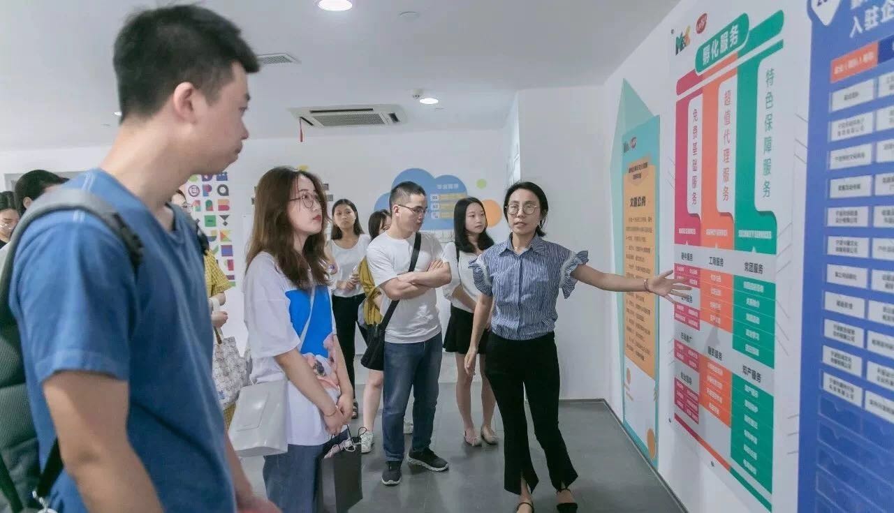 在参观中学生代表团发现目前园区入驻公司的工作人员都十分年轻,玖策公关与梵一标识的两位老总都认为:广告是一个需要激情需要创意的产业,人们一旦上了年纪思想就很容易被已有的经验固化,但是年轻人的想法天马行空富有创造力。