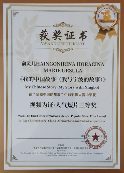 的支持与帮助,是你们让我有机会近距离感受中国的魅力,这份经历将永远铭刻在我的心中。—— HAINGONIRINA HORACINA MARIE URSULA