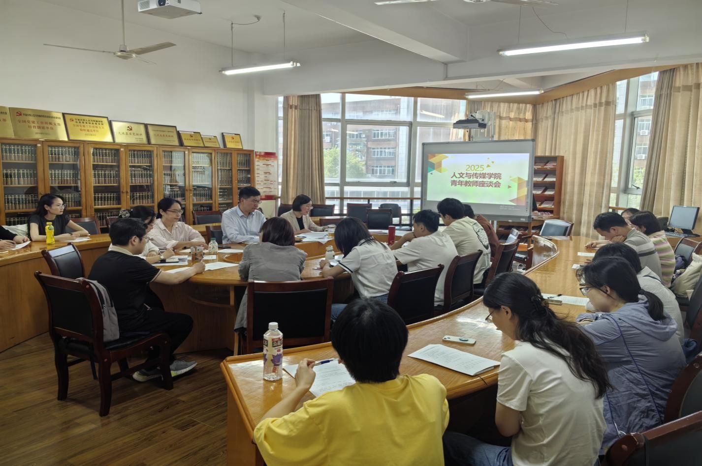 在包玉书科学楼10号楼216会议室召开青年教师座谈会,学院党政领导,关工委、分工会负责人以及近三年来引进的青年教师参加会议。