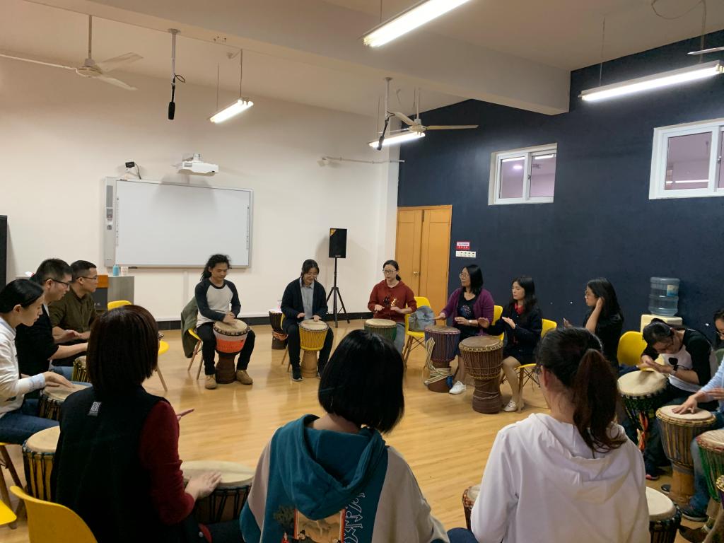 来自马达加斯加的三位留学生也来参与助兴,一场非洲鼓的欣赏与教学活动让老师们在笑声和鼓声里舒缓了疲惫、放松了精神,在笑声与鼓声中好像做了一场精神spa。同时,本活动也增强了师生感情,加强了国际间的文化交流。