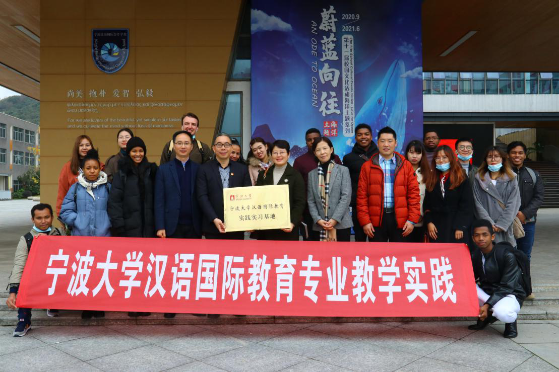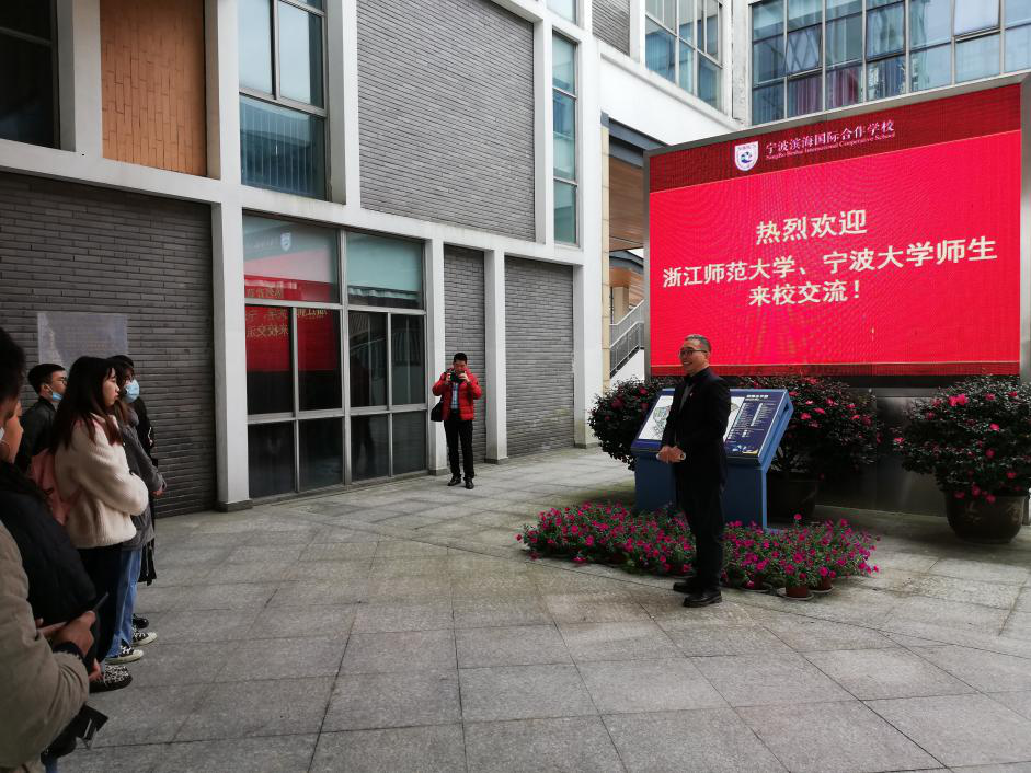 的19级汉语国际教育专业硕士、17级汉语言专业本科留学生在毛海莹老师、杜娅林老师和郭旭老师的带领下,前往宁波滨海国际合作学校进行参观、课堂观摩交流等一系列教育实践活动。