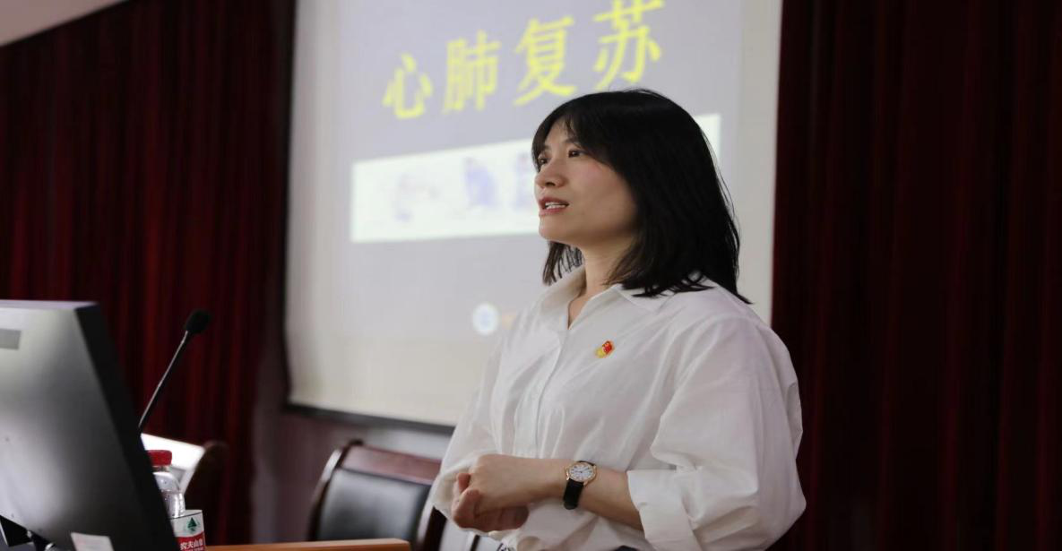 党委副书记朱学庆老师主持,由中国科学院大学宁波华美医院任姣姣护士长主讲。学院师生在讲座过程中积极地学习心肺复苏知识,并现场练习心肺复苏动作。