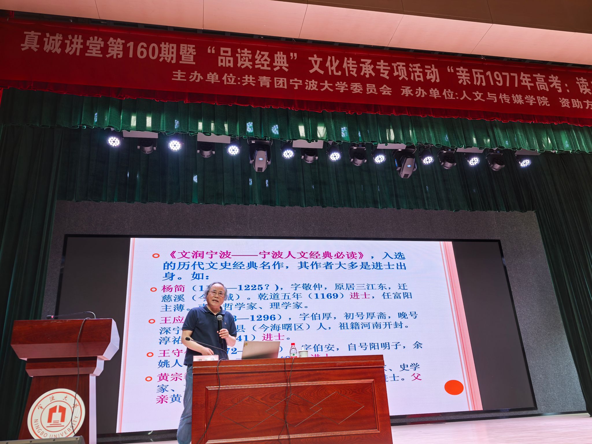 接着,他回忆了当时的大学生活,虽然求学条件艰苦,但同学们十分珍惜学习的机会,在学习和生活上互帮互助,老师们专注学术的态度也令人钦佩。周教授专门介绍了宁波师院77级中文系涌现的方卫平、周静书等同窗们的成就,号召大家以优秀校友为榜样,在求学路上砥砺奋进。