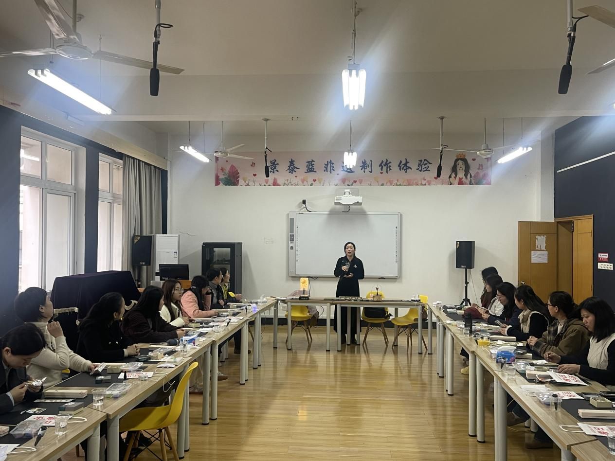在包玉书科学楼10-208室开展“非遗之光,指尖飞舞”景泰蓝非遗制作体验活动,30余名女教师女学生一同领略非遗魅力,共度美好时光。