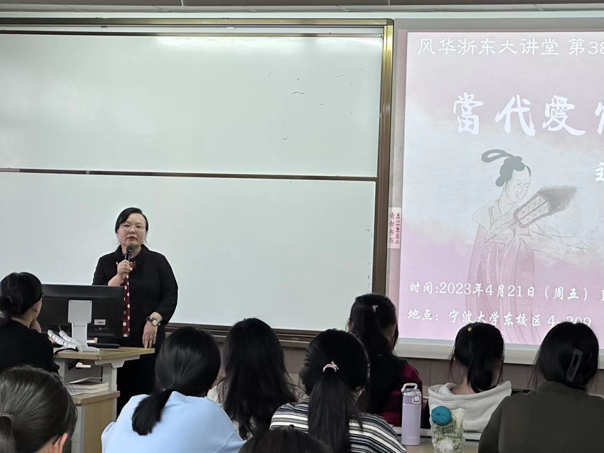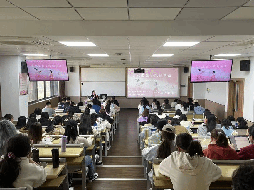 2023年4月21日下午,北京师范大学文学院教授、博导张莉应邀来我校作题为“当代爱情小说的讲法”的讲座。本次讲座由宁波大学人文与传媒学院主办,嘤鸣文学评论社策划。人民文学出版社王昌改编辑一同前来,与在场师生就出版编辑等问题做了交流。