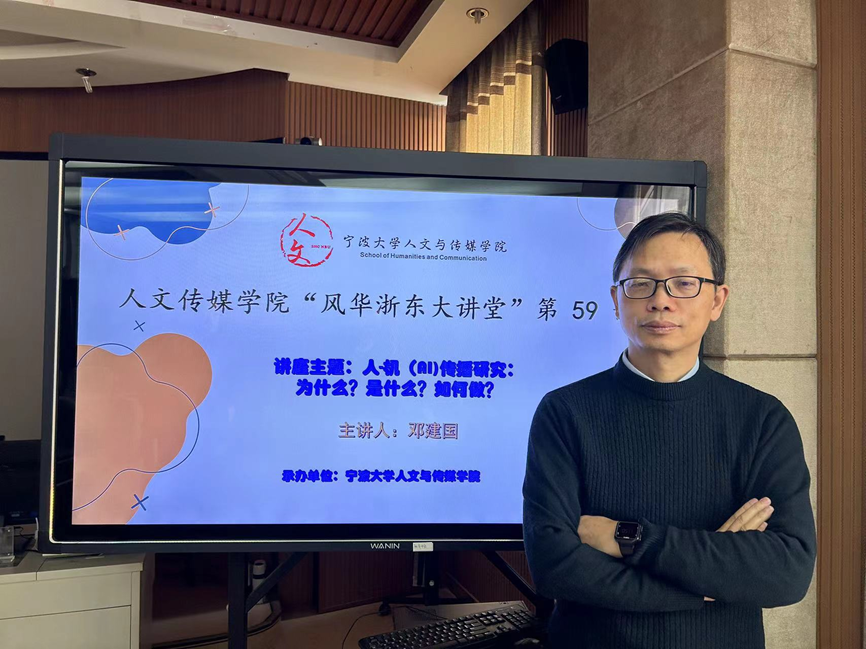 11月17日上午,复旦大学新闻学院传播学系教授、博导、传播学博士邓建国教授应邀为我院师生开展了题为《人-机(AI)传播研究:为什么?是什么?如何做?》的讲座,本次讲座由新闻传播学系副主任赖明东老师主持。