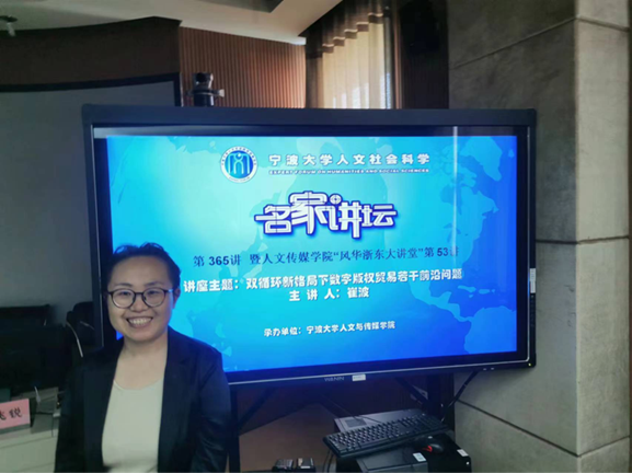 11月1日下午宁波大学人文与传媒学院邀请中国社会科学院大学-浙江传媒学院长三角智能传播研究院执行院长,浙江传媒学院新闻与传播学院党委书记,浙江传媒学院国家一流专业编辑出版学专业负责人崔波教授作客人文社会科学名家讲坛暨人文与传媒学院“风华浙东大讲堂”,开展主题为《双循环新格局下数字版权贸易若干前沿问题》的专题讲座,我院赖明东老师担任主持人,共计40余位老师同学参加。
