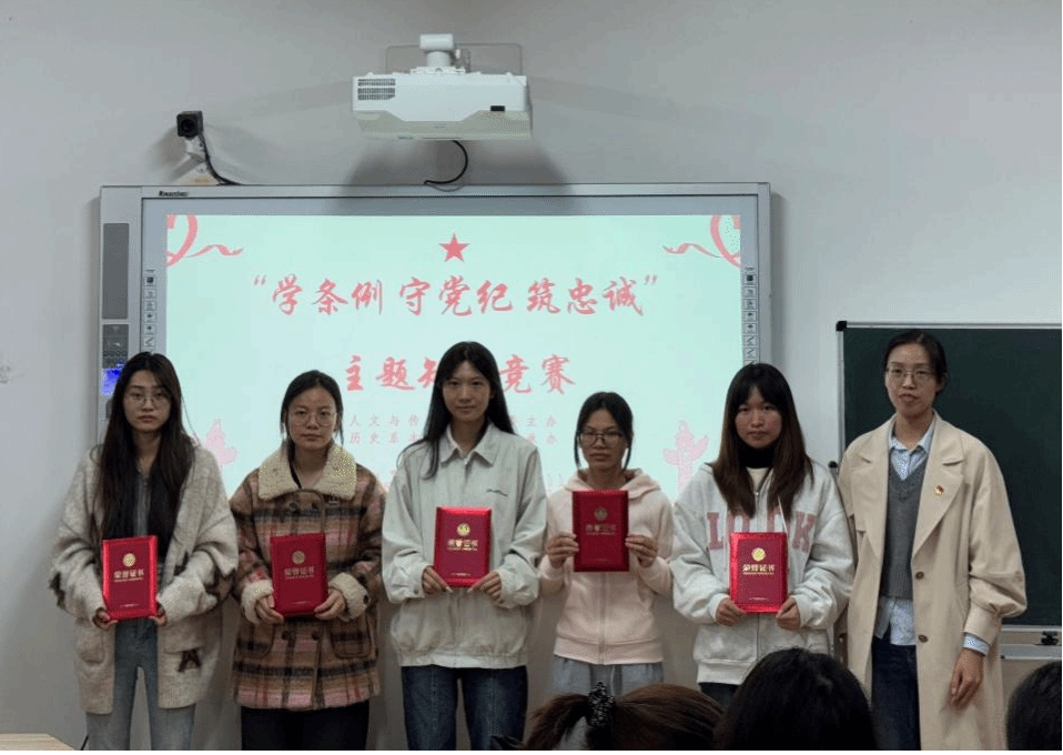 本次活动由人文与传媒学院党委主办,历史系本科生党支部承办,共有25名发展对象参加。活动重点围绕《党章》《中国共产党纪律处分条例》以及《中国共产党党徽党旗条例》等党纪党规展开考查,通过知识竞答的形式,寓教于乐,推动关于党章党纪党规的理论学习往深里走、往实里走、往心里走。