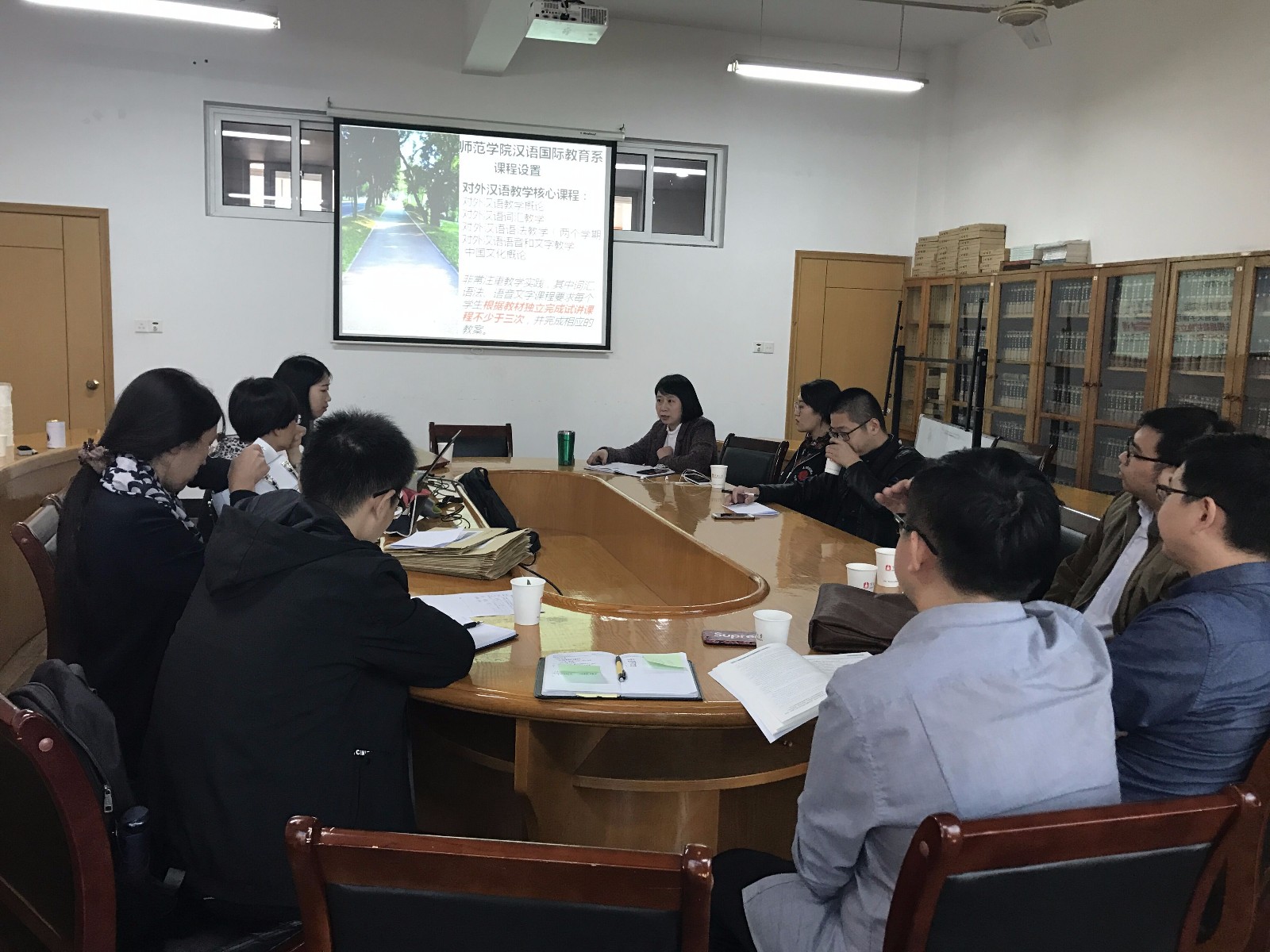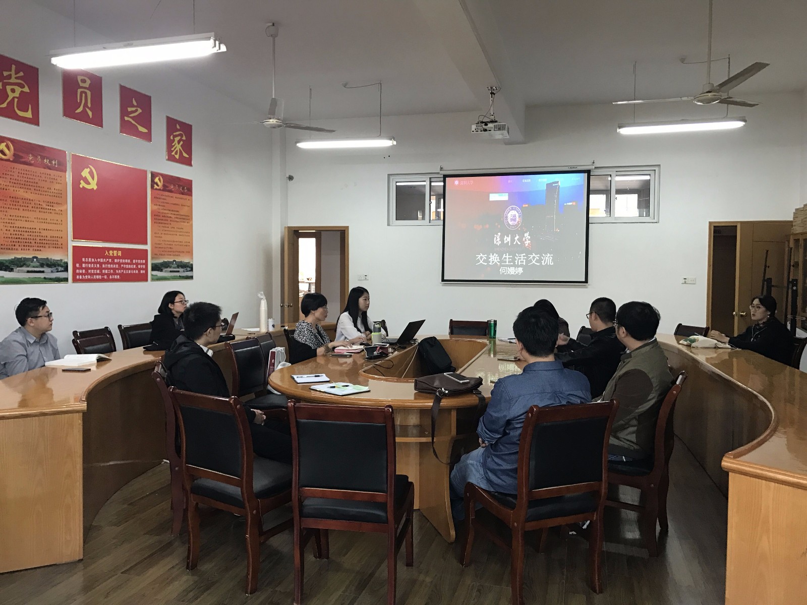 本次教学沙龙主讲人为14级汉语言文学、新闻、广告专业的国际国内交换生,5位同学通过PPT分别展示了各自交换学校的专业特色、优势并介绍了与我院相关专业的差异。汇报展示完毕后,系主任、各专业教师与交换生们在专业的课程设置、课堂教学形式等方面进行了深入的交流,每位交换生对我院相关专业的课程内容与形式也提出了自己意见和建议。本次交换生与系主任、专业教师的交流对我院的专业建设提出了宝贵的意见,对教师们的教学内容形式有较大启发,也为2018版培养方案的修订提供了重要的参考。