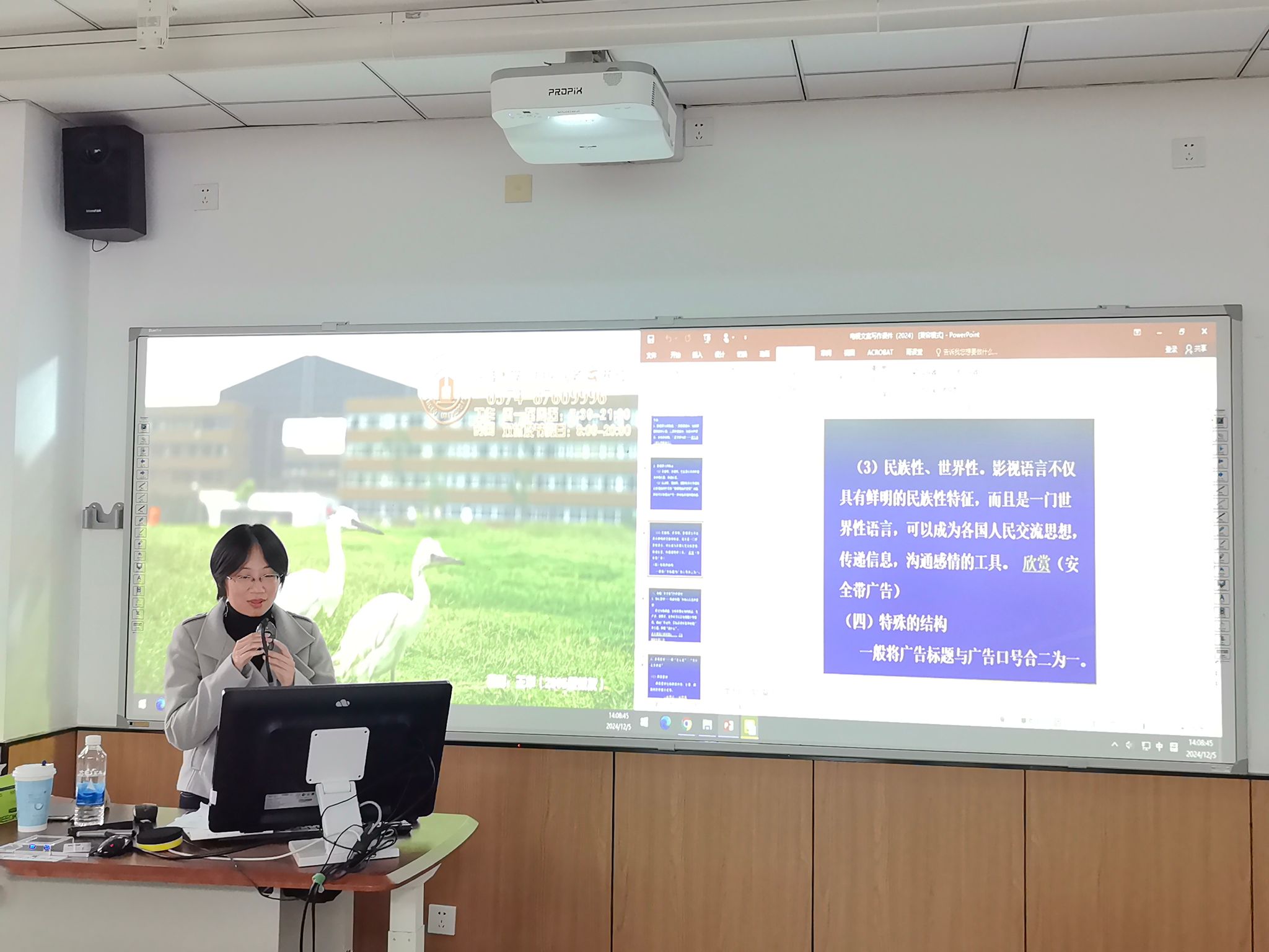 12月5日下午,人文与传媒学院张颖老师面向全校讲授课程思政公开观摩课“广告文案写作”。学院副院长田力,学院教学督导屈广燕以及传播系副主任赖明东、陈宸等前来观摩。