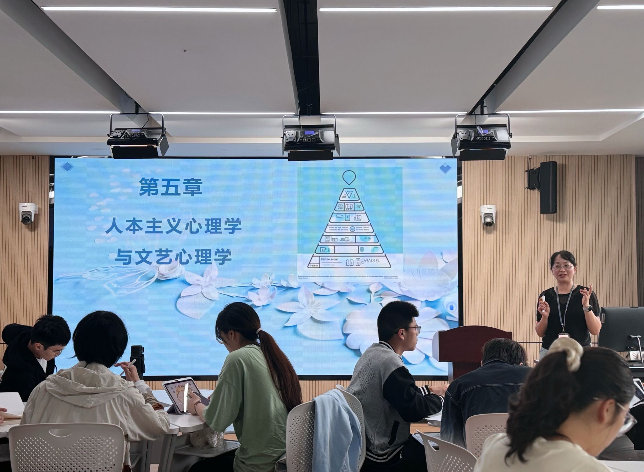为进一步落实学校本科教学工作部署,充分发挥优秀教师的示范引领作用,持续提升教师教学能力,5月9日上午,人文与传媒学院成功开展“名师名课”示范公开观摩课活动。此次公开课由中文系胡泽球老师主讲,围绕《文艺心理学》课程展开深度教学展示。学院领导、中文系教师及青年教师代表共同参与了观摩学习活动。