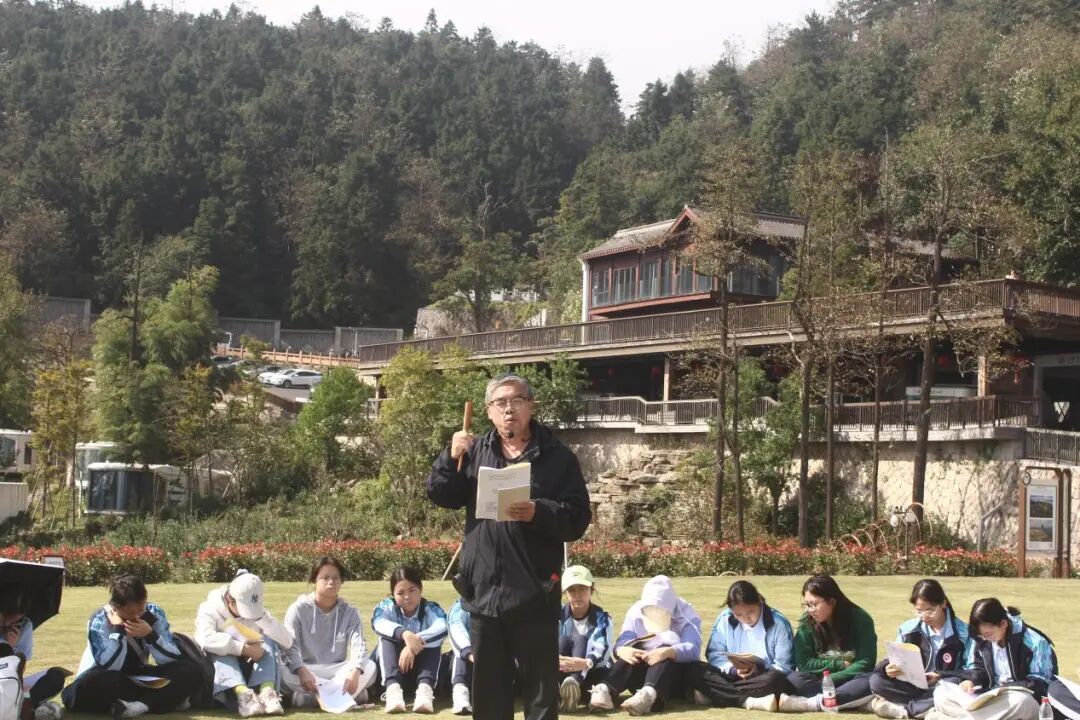 10月24日至25日,宁波市姜山中学与宁波大学人文与传媒学院合作举办姜山中学文学特长生“浙东唐诗之路”主题采风活动。姜山中学教务处主任沈瑾、副主任葛晓红,宁波大学人文与传媒学院副院长田启涛、培训办主任王志凯全程带队指导。此次活动是姜山中学文学特长生培养工程系列活动之一,旨在通过“行走的课堂”,将唐诗从纸面带入山水之间,让青年学子在真实的历史场景中感受古典文学的生命力与感染力。两天行程紧凑而充实,既有课堂讲授,也有实地吟诵与探访,同学们在行走中感受诗歌,在山水间体悟文化。