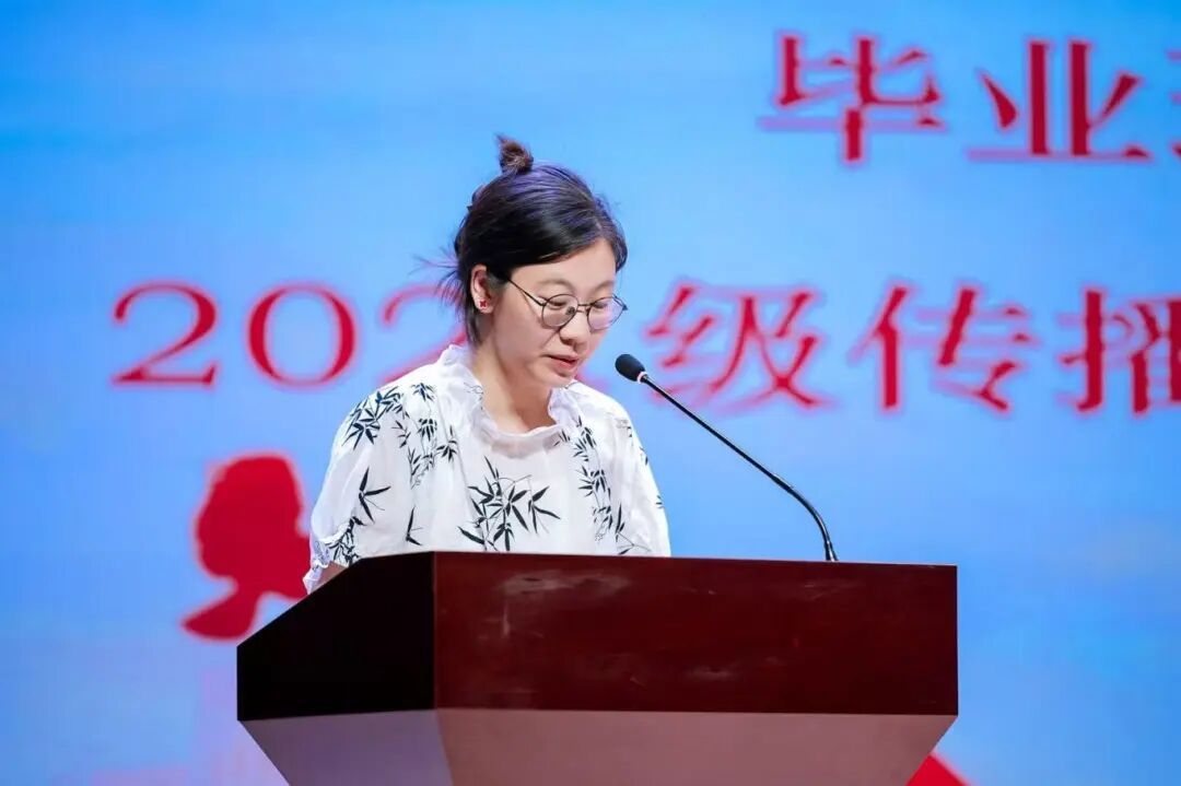 最后,由人文与传媒学院执行院长李乐作专题思政微课,对毕业生们以一位师长最深切的期许,送上的临别的嘱托:一是要乘势而为,以终身学习拥抱时代浪潮;二要独立而为,以清醒认知锚定人生航向;三是要奋发有为,以远大志向激扬青春力量。“乘风好去,长空万里,直下看山河。”这是李院长对全体文院毕业生们的美好祝愿。