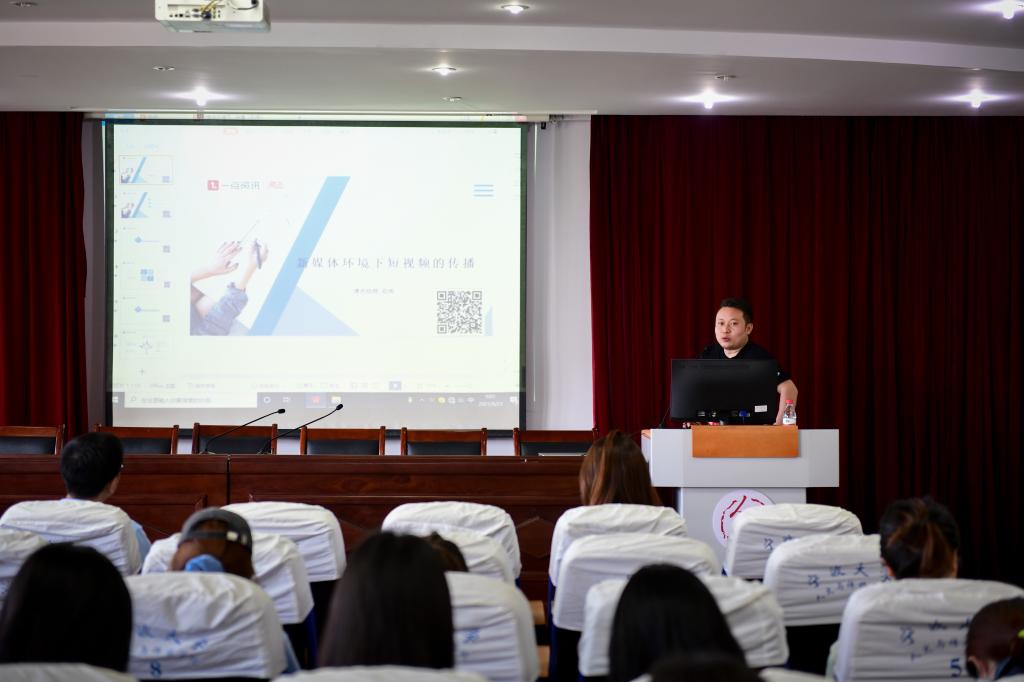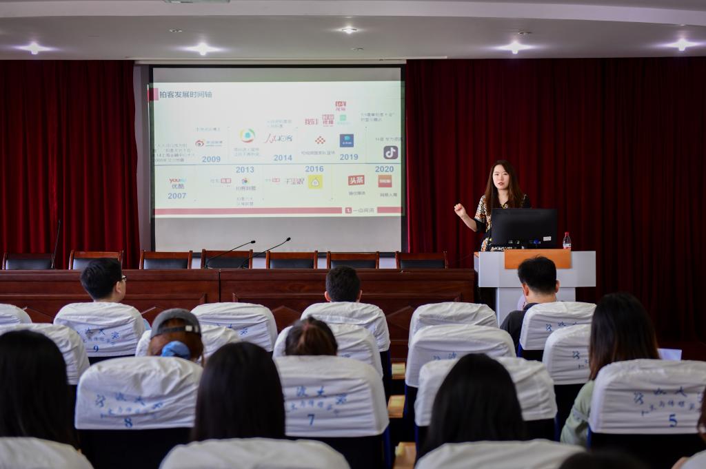 授牌仪式结束后,业界导师孟园、石伟分别做了题为“拍客—资讯短视频的流量之源”、“新媒体环境下的短视频传播”的专题报告。