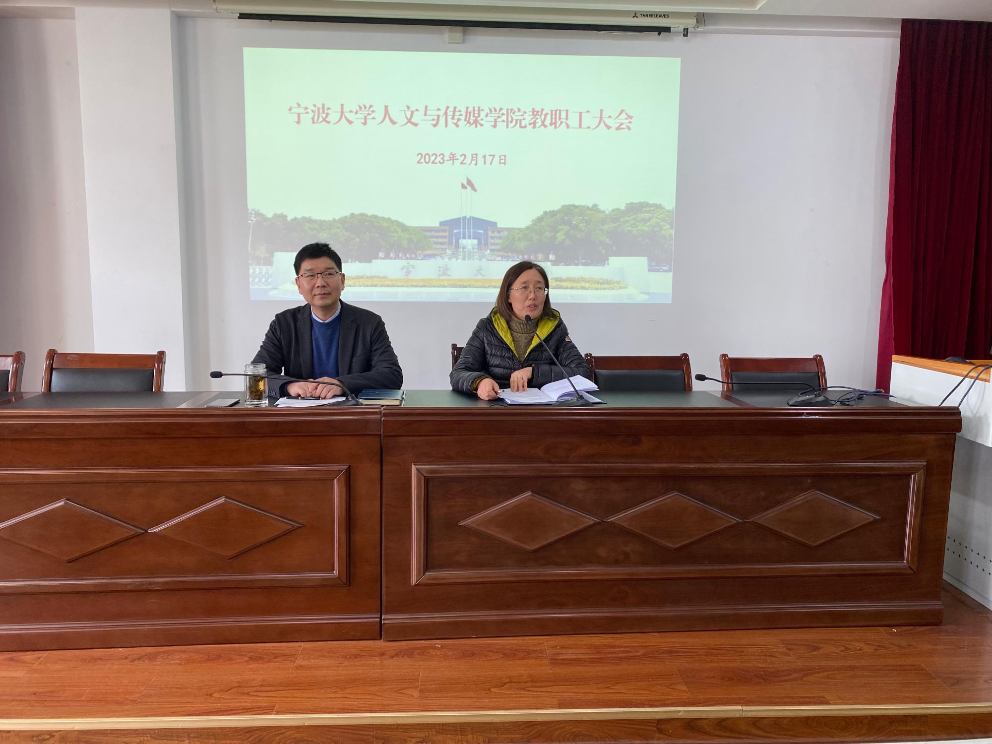 2月17日下午,人文与传媒学院在包玉书科学楼10号楼209报告厅召开全院教职工大会,会议由学院党委书记张佩芬主持,学院全体教职工参加。