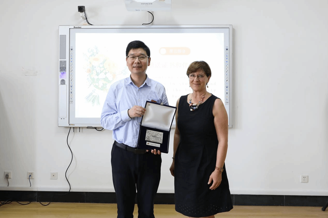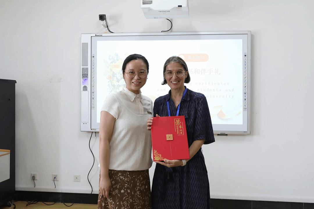 宁波大学国际处处长周洵瑛为维罗纳大学来访师生颁发了证书,以表彰他们在夏令营中的出色表现。而李乐院长则代表学院向维罗纳大学师生赠送了精心准备的伴手礼,寓意着两校之间的深厚情谊。