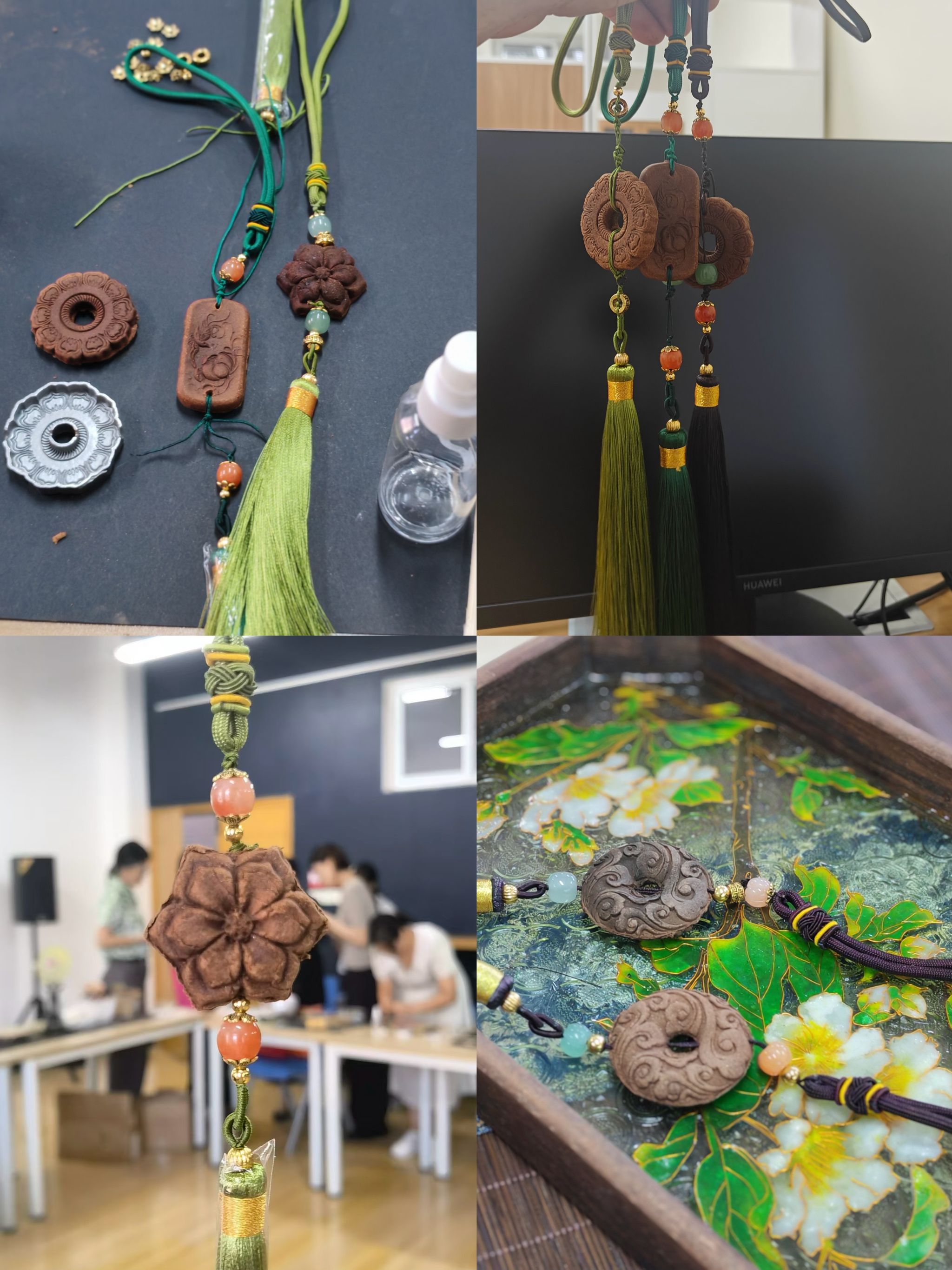 在动手实践环节,女教师与女学生分组而坐,开启专属香牌创作。大家根据喜好挑选香材——或选清新沉香,或择醇厚檀香,再搭配心仪模具专注塑形。制作过程中,女教师们分享生活巧思,女学生们交流创意想法,遇到塑形难题时,师生相互支招、共同探索,现场满是欢声笑语。当一块块带着天然香气、造型精致的香牌完成时,女教师与女学生们手持作品,脸上洋溢着满满的成就感,纷纷表示要将这份“文化信物”佩戴在身,让清雅香韵与活动记忆常伴左右。
