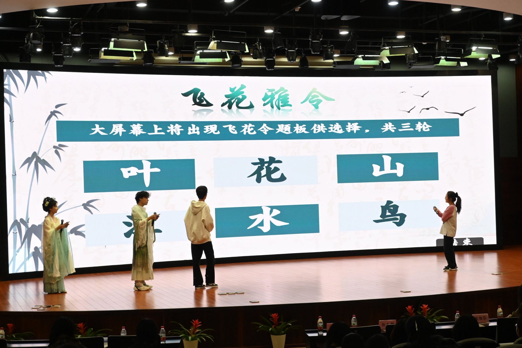 近日,由人文与传媒学院承办的“建校纪念周”系列活动之第十届诗词大会决赛顺利举行。校友李亮伟教授、杨文钰博士、李阳博士担任评委,学院党委书记张佩芬、党委副书记孙文静等广大师生共同参与此次诗词盛会。