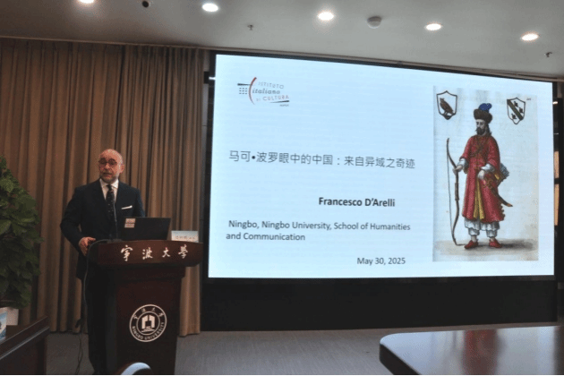 2025年5月30日下午,宁波大学人文社会科学名家讲坛第466讲暨人文与传媒学院“风华浙东大讲堂”第104讲在安中大楼碧华厅成功举办。意大利驻沪总领事馆文化处达仁利(Francesco D’Arelli)处长受邀担任主讲嘉宾,以“马可·波罗眼中的中国:来自异域之奇迹”为题,为在场师生带来了一场学术盛宴。本次讲座由人文与传媒学院执行院长李乐教授主持。